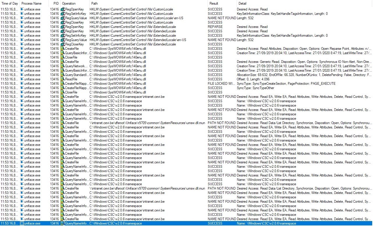 I do use the filter in ProcessMonitor. I will try the 2 sessions with logs as you described but to be clear, the uniface.exe process hangs and I think does nothing any more, (nothing appears in procmon any more) but it does not crash. (it hangs)