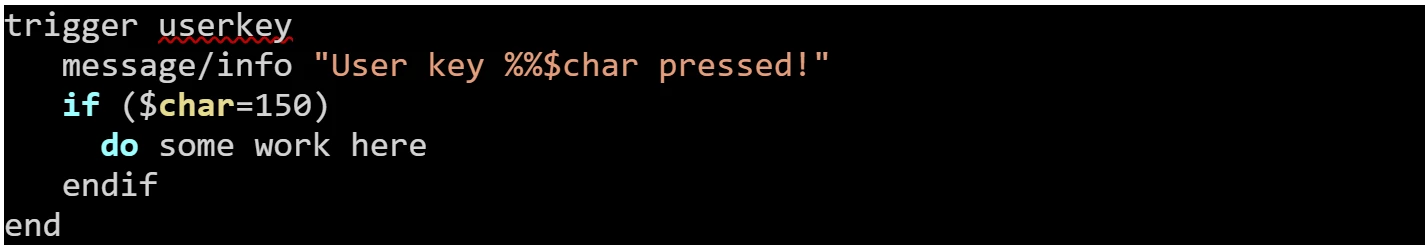 The userkey trigger can also be fired by a keyboard combination defined in the KTT as we saw earlier in this blog. Here’s an example of a user key definition in the usys.ini file: