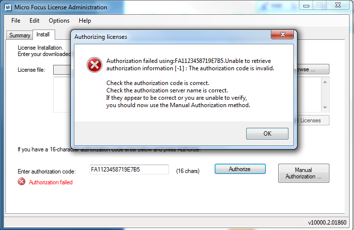 If you have received a 16-digit authorisation code to license your product, you will need to activate this by authorising it through the Micro Focus License Administration tool.