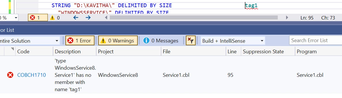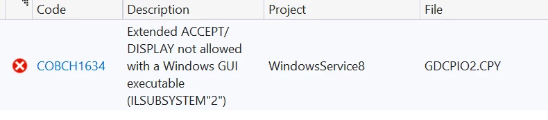 Thank you Chris! Project properties change to Fixed has resolved the compiler issue. Currently, I have a query on this - I am including a logic that calls standalone native COBOL program - ProgramA (say) that is already compiled, built and .exe is present in a different location other than /bin/debug. Is there anyway that our service program will be able to pick this .dll or .exe from this location (other than /bin/debug) when a CALL statement is included?