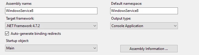 I was hesitant in the beginning to change the Output type in properties to Console application thinking if the windows service execution will be affected in anyway. I tested with a basic service program and the change in properties worked good with service execution too.