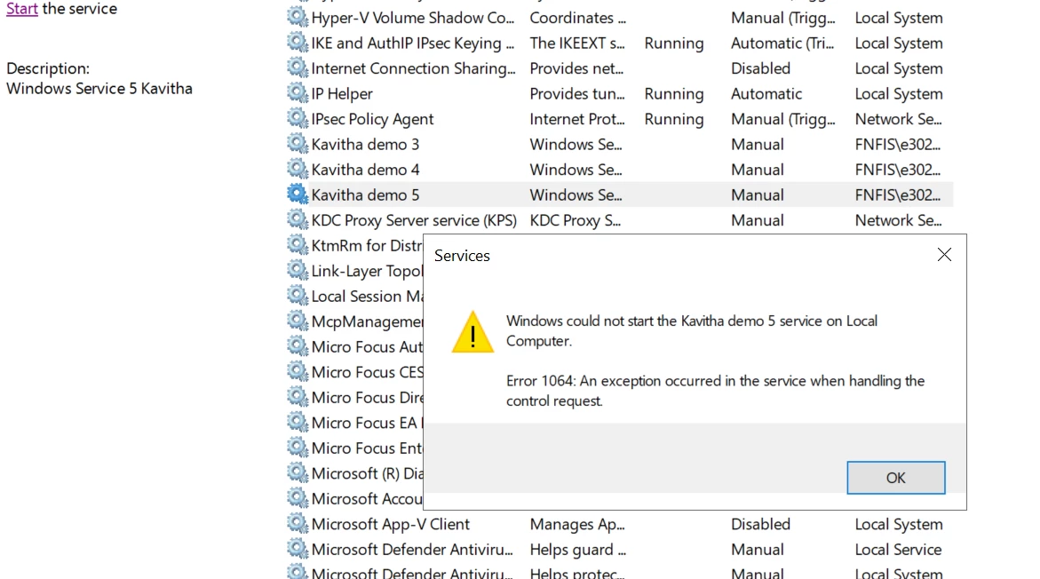 Windows service project .exe location - D:\\Kavitha\\WindowsService\\WindowsService8\\bin\\Debug