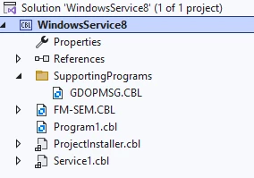 How you migrate your code from earlier product versions is really dependent on what those programs do and how they need to be shared. For your service programs, since the service itself is in .NET managed code, I would suggest that the called subprograms are also compiled as managed code, but if these subprograms are shared between other parts of your application that are being compiled as native code, then that might not be possible. I have attached a file called WS9new.zip to the support case that demonstrates how you might set up an all .NET managed code solution which contains multiple projects. The first project is the service itself. That should be left alone and other called programs should be placed into a separate project within the same solution. You can add a project reference to the service project that point to the subprogram project and then programs within the subprogram project can be called from the service project.