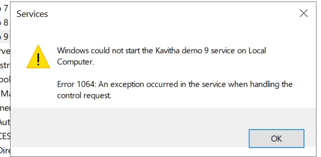 at Void WindowsService9.Program1.Main() in D:\\Kavitha\\WindowsService\\WindowsService9\\Program1.cbl:line 22