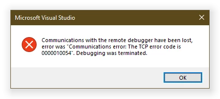 When I hover over an identifier that's being used in a string reference modification, "communications with the remote debugger have been lost":