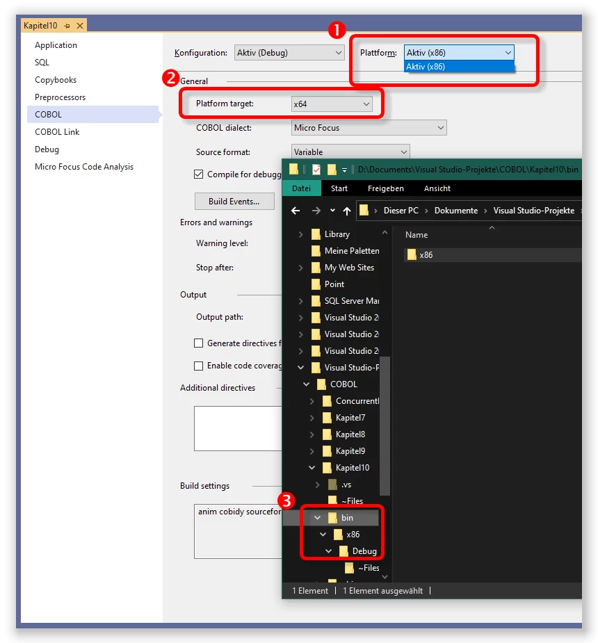 (i.e. no compiler settings are changed when this value is changed (see Build Settings text field at the bottom of the COBOL settings page)) - no MSBuild platform target is available for x64 in the solution (1)