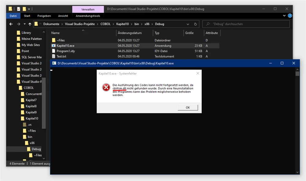 Creating a COBOL console application solution I don't seem to be able to run the compiled EXE file by double-clicking it.