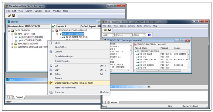 Typically a Record Layout File is created within a Visual COBOL project by right-clicking on the source file name within the solution explorer that contains the Data Division information you require, and selecting Create Record Layout File.