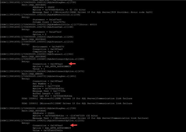 When we enabled the trace in the odbcinst.ini , we are seeing this on the trace file.