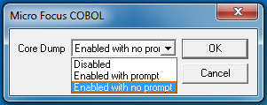 - Enabled with no prompt – no message box displayed when a core dump is about to be created.
