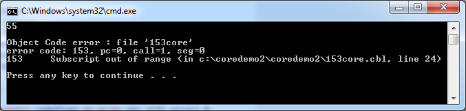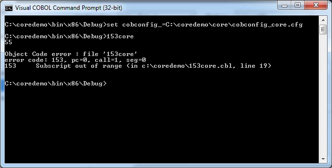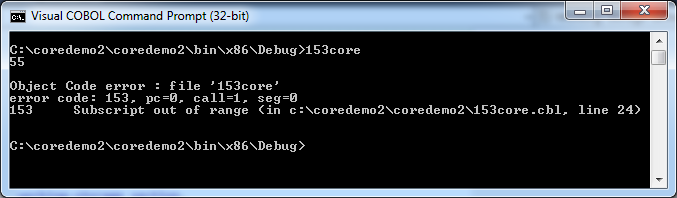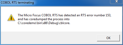 1 - The run-time system produces a core file when any exception is received that would normally produce a core file on the host system; for example, a run-time system error COBRT153, and so on.