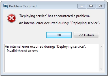 When deploying a service interface to an enterprise server instance, why does Eclipse display an 'Invalid thread access' error message?
