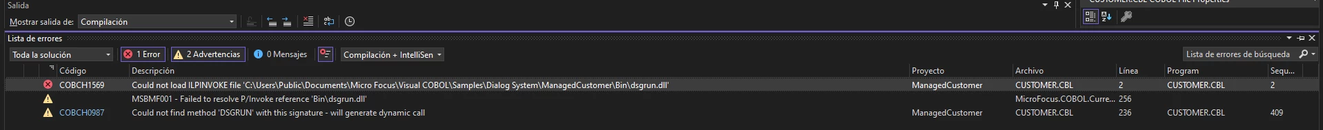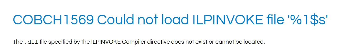 Thank you very much for your instructions, we are executing the instructions that are in the Sample but, when performing the build we find the error "COBCH1569 Could not load ILPINVOKE file '%1$s' "The .dll file specified by the ILPINVOKE Compiler directive does not exist or cannot be located.