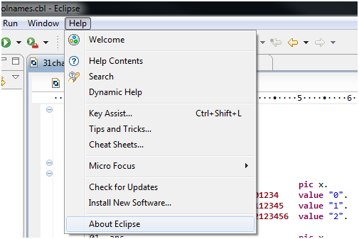 Go to help>about eclipse