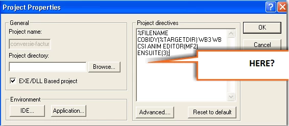 If you are using a Net Express project then you can add these under Project-->Properties in the compiler directives box. If you are building from the command line using a .bat file then these might be in a directives file like cobol.dir or you might be specifying them on the command line.