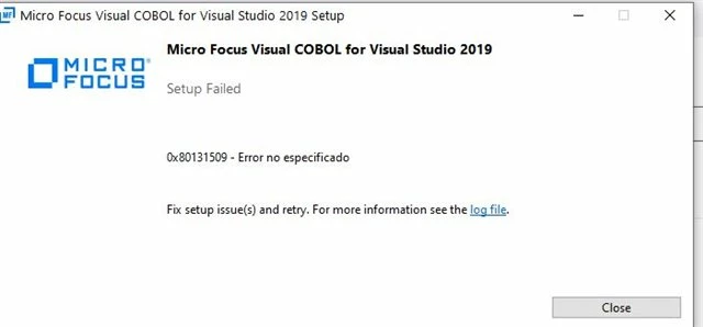 Hoy intenté actualizar en mi PC la versión 7.0 de Visual Cobol a la versión 8.0, ejecutando el proceso vcvs2019_80.exe, y anteriormente no he desinstalado la 7.0. No he recibido ningún mensaje de que debo desinstalar previamente el 7.0, y cuando está terminando la instalación da un error de falla de instalación 0x80131509, no termina la instalación y genera un archivo de registro. La instalación conservó mis datos de licencia, pero VS2019 no reconoce las soluciones de VC que ya tenía. Intenté realizar una reparación de VC 2019 8.0 y devuelve el mismo error 0x80131509. He reiniciado y los errores continúan. ¿Cómo puedo hacer una instalación limpia de VC8.0 sin perder la licencia? Incluso si desinstalo VC8.0 y lo vuelvo a instalar, aparece el error 0x80131509 al final de la instalación.