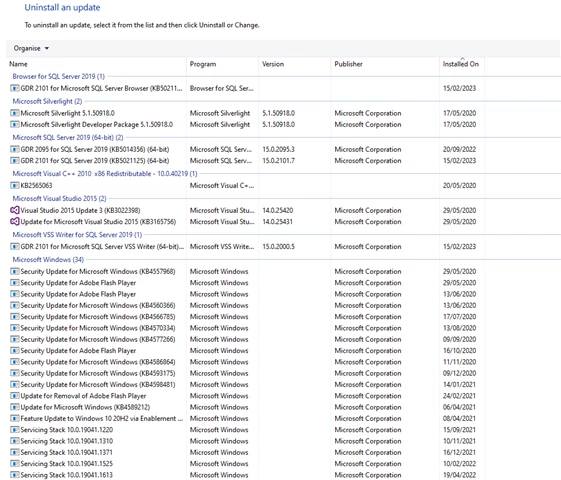 Open up the Windows Control Panel->Programs and Features and click on the link for view installed updates