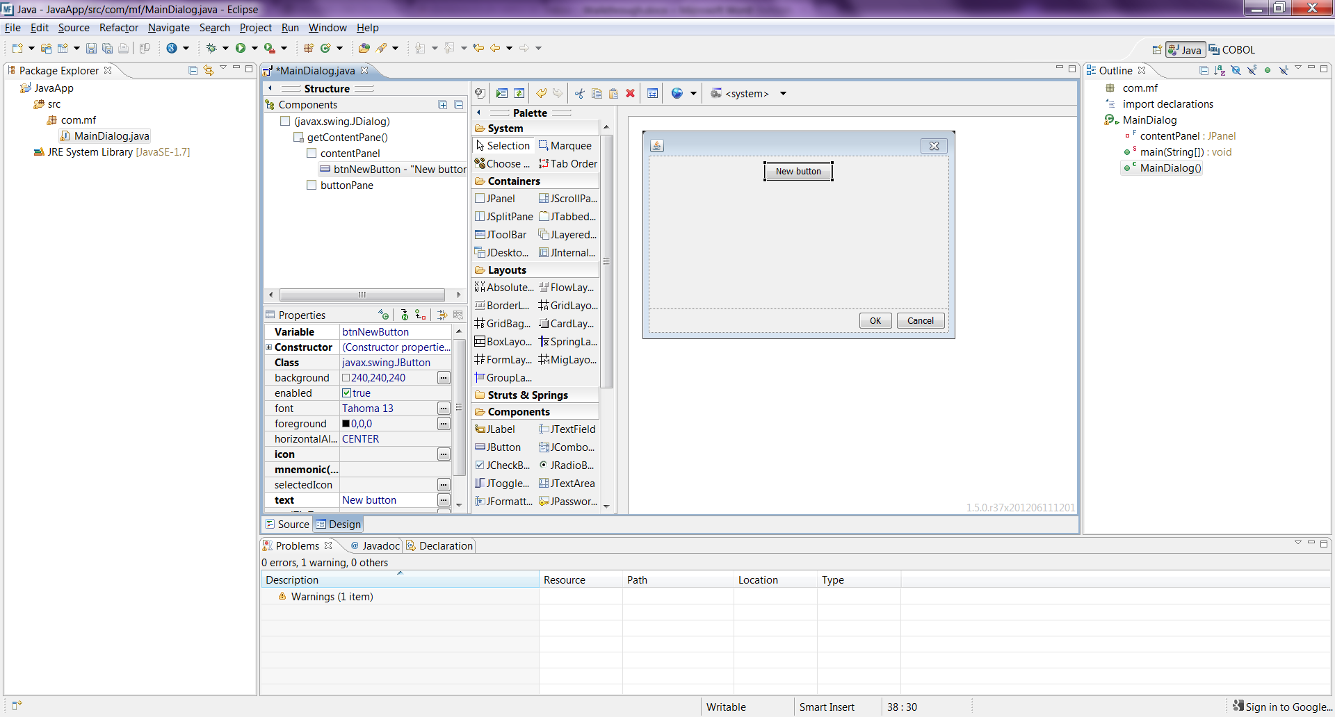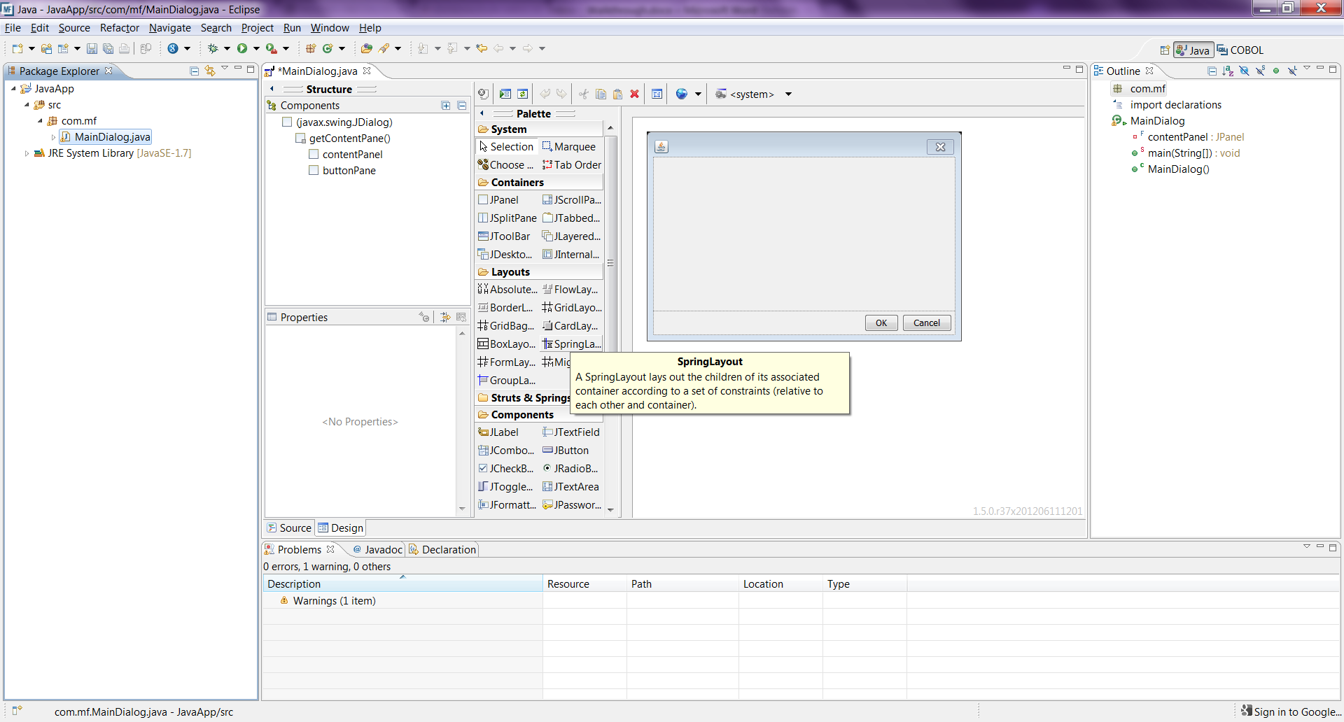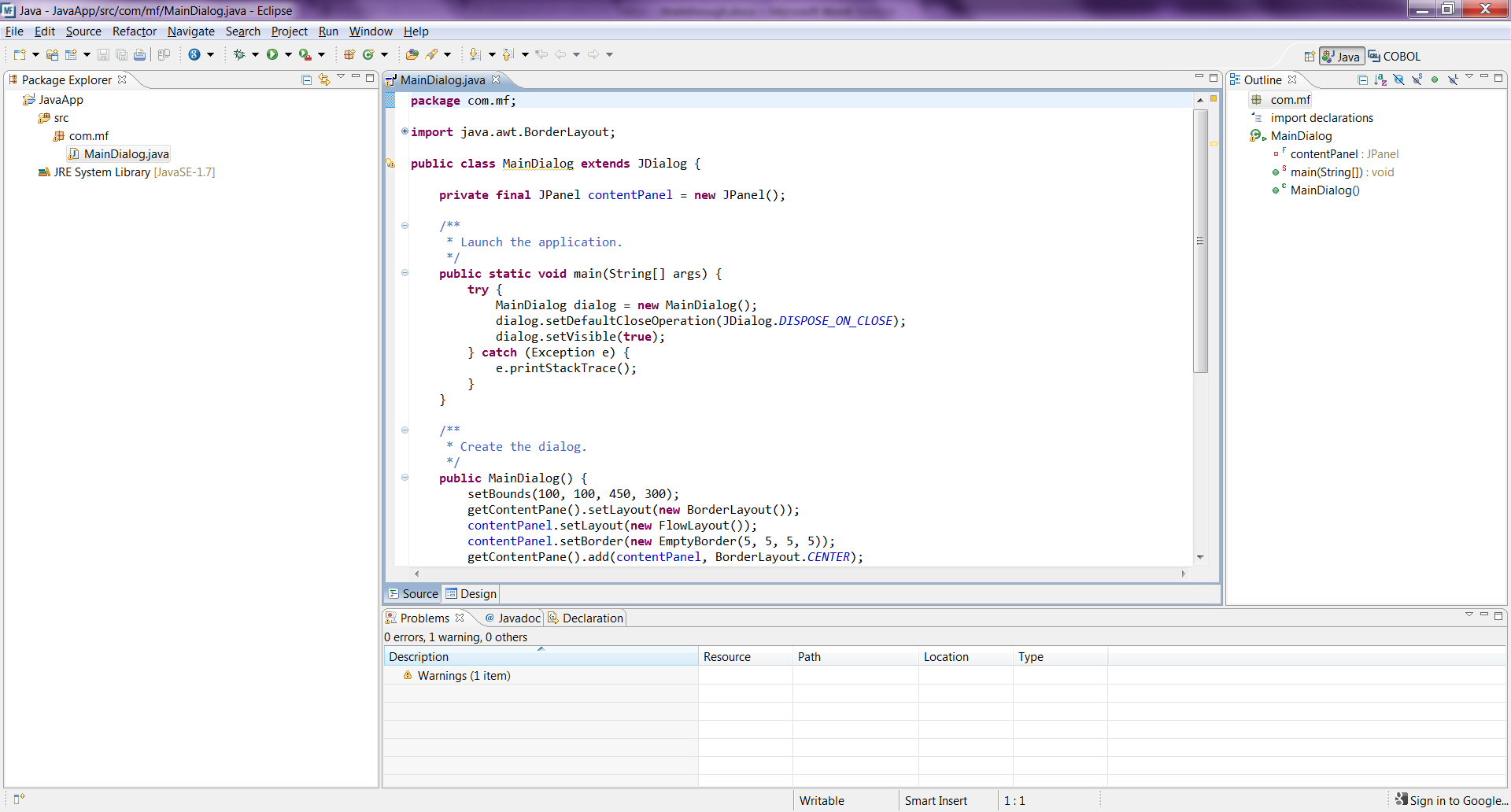 The actionPerformed method gets called every time the button is invoked. We’re going to call a COBOL from this method but before we do that, we need to create a COBOL project
