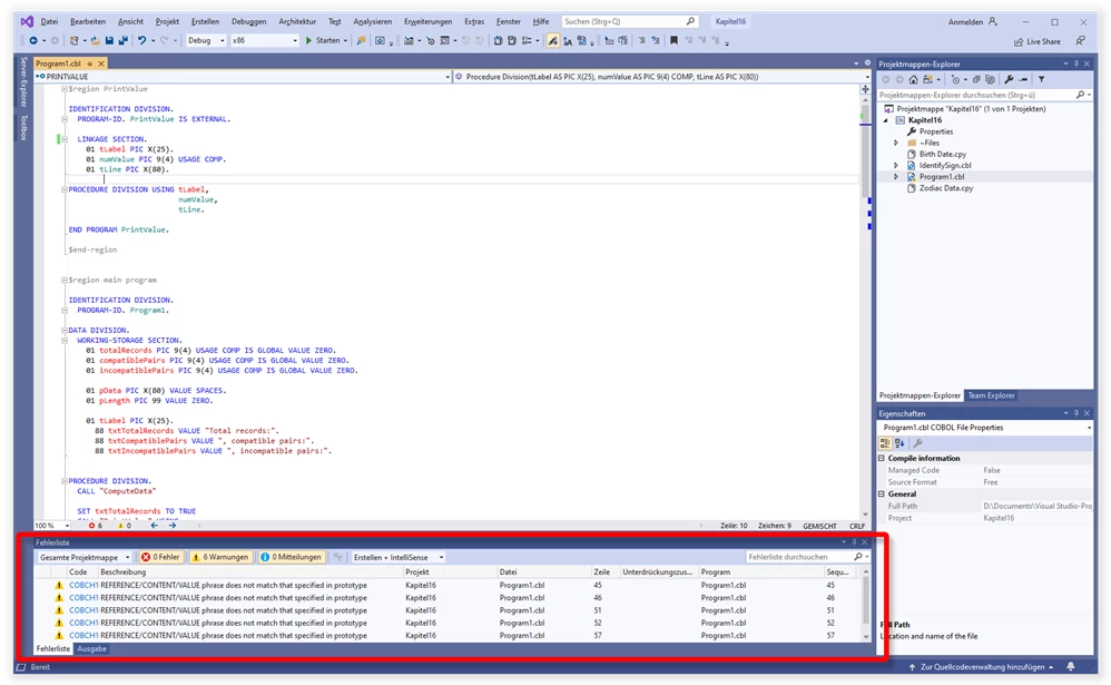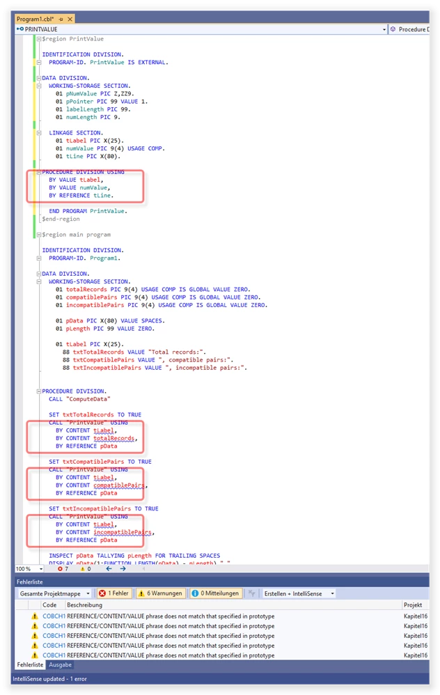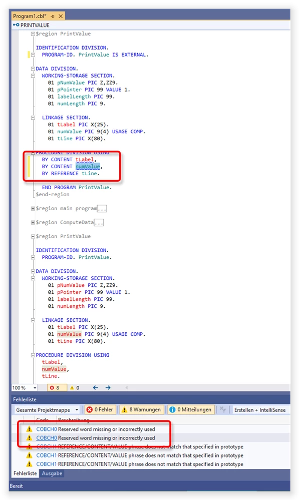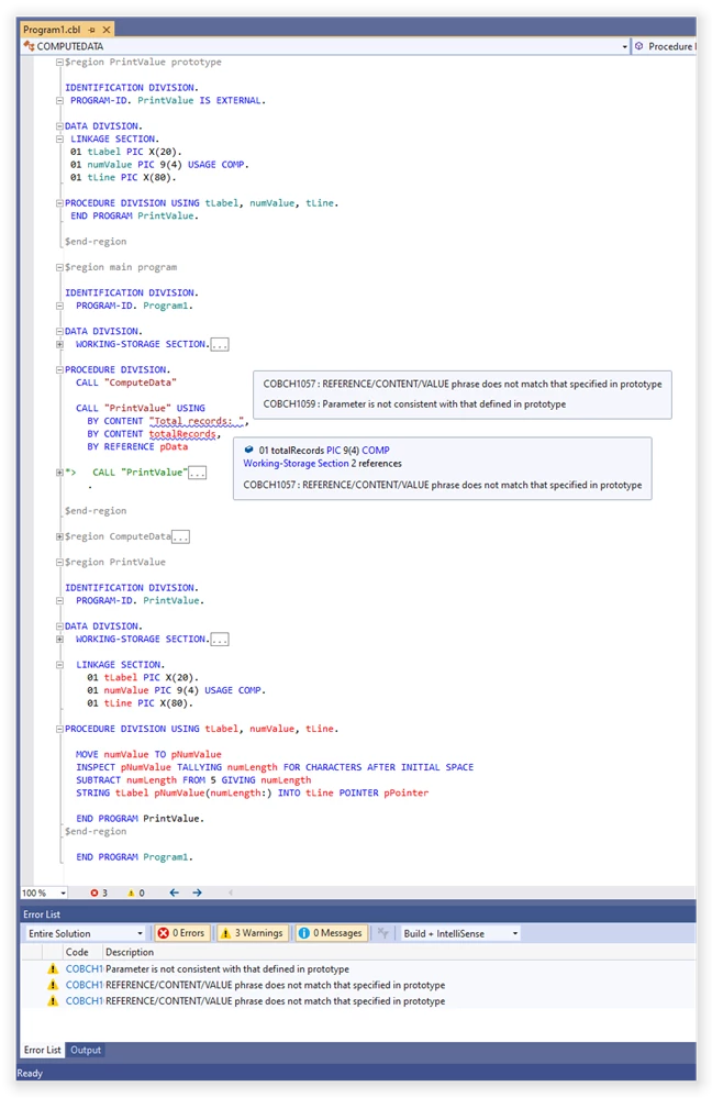 - It's Visual COBOL version 5.x that's giving false warnings. Version 6.x is not going to show these warnings.