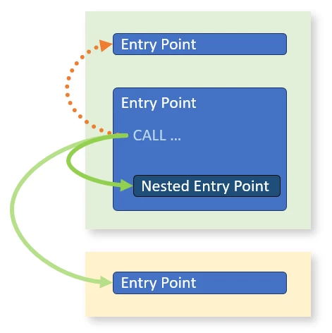 Nonetheless, is it true then, that the CALL statement can find nested subprograms and entry points in other files, but it cannot find an entry point from the same file?