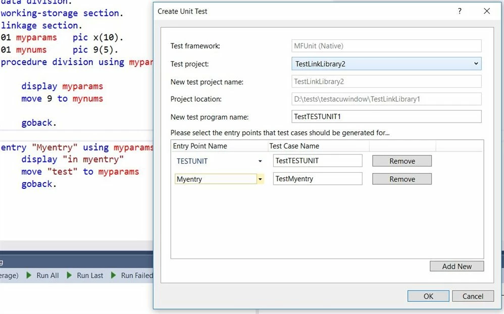 Base on your answer, I understand that VS Cobol IDE has not support automatic create test case for each entry point which are prodecure in "Procedure Division", incase cobol version is not OO Cobol (such as Visual Cobol II, IBM Cobol, Net Cobol, ...), Is that right ?
