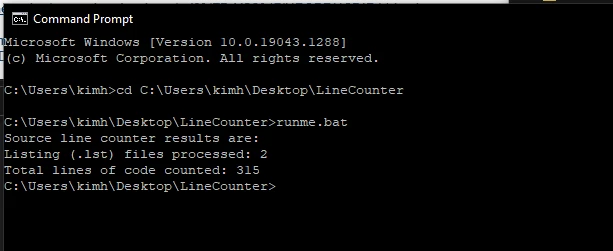 -Execute the .bat file to get the count of lines: