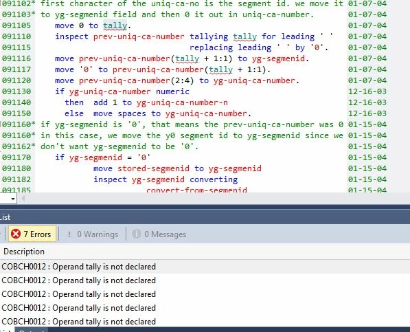 I am working on a modernization code where we are upgrading netexpress to visual cobol for visual studio. In one of the code special register character "Tally" is being used which is throwing back error saying that "Operand tally is not declared.