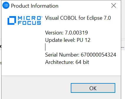Can you let us know which version of Visual COBOL for Eclipse you are using? One easy way to find this in Eclipse is to go to Help->Micro Focus-Product Information, and use CTRL-C to copy the text inside the Product Information box.