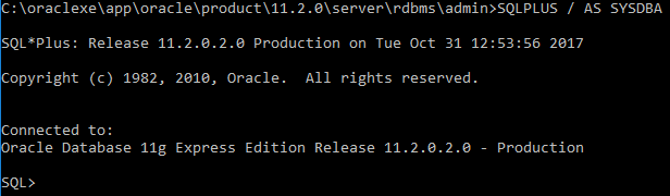 - Change directory to C:\\oraclexe\\app\\oracle\\product\\11.2.0\\server\\rdbms\\admin