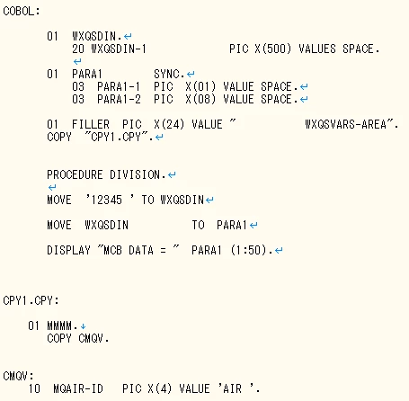 Visual Cobol : [12345 WXQSVARS-AREA ]