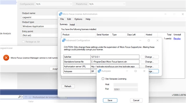 I have a license installed, as you can see in the attached screenshot.I have restarted the Micro Focus Autopass Daemon Service and the problem persists.I suppose that the installed license is the old Safenet license, obtained after revoking it from an old PC. If I need the new Autopass license, how can I generate it? By performing a Revoke?%MCEPASTEBINA%