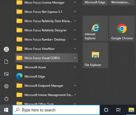 Does the Micro Focus Visual COBOL group appear on your Start menu?