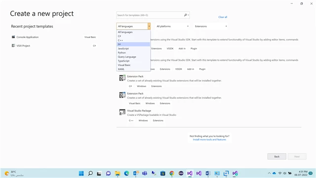 The license was installed, but my Visual Studio doesn't show Cobol.