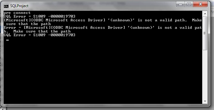 Above is a window with the error I'm receiving when trying to connect to a Microsoft Access DB from VS Cobol 3.0. I connected it under tools which appeared successful. Help!