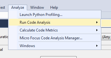 2. On the Visual Studio menu click on Analysis > Run Code Analysis: