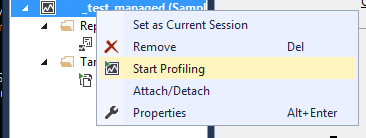 3. This opens the Code Analysis View. From here right click on the relevant report Entry and click on Start Profiling: