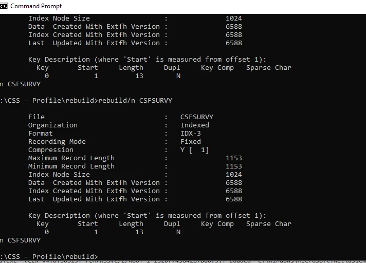 But a file status 39 does not normally mean that a file has become corrupt. It normally means that the program that is trying to open the file has it defined differently than it really is. This can mean record size or key position, number of keys, length of keys etc.