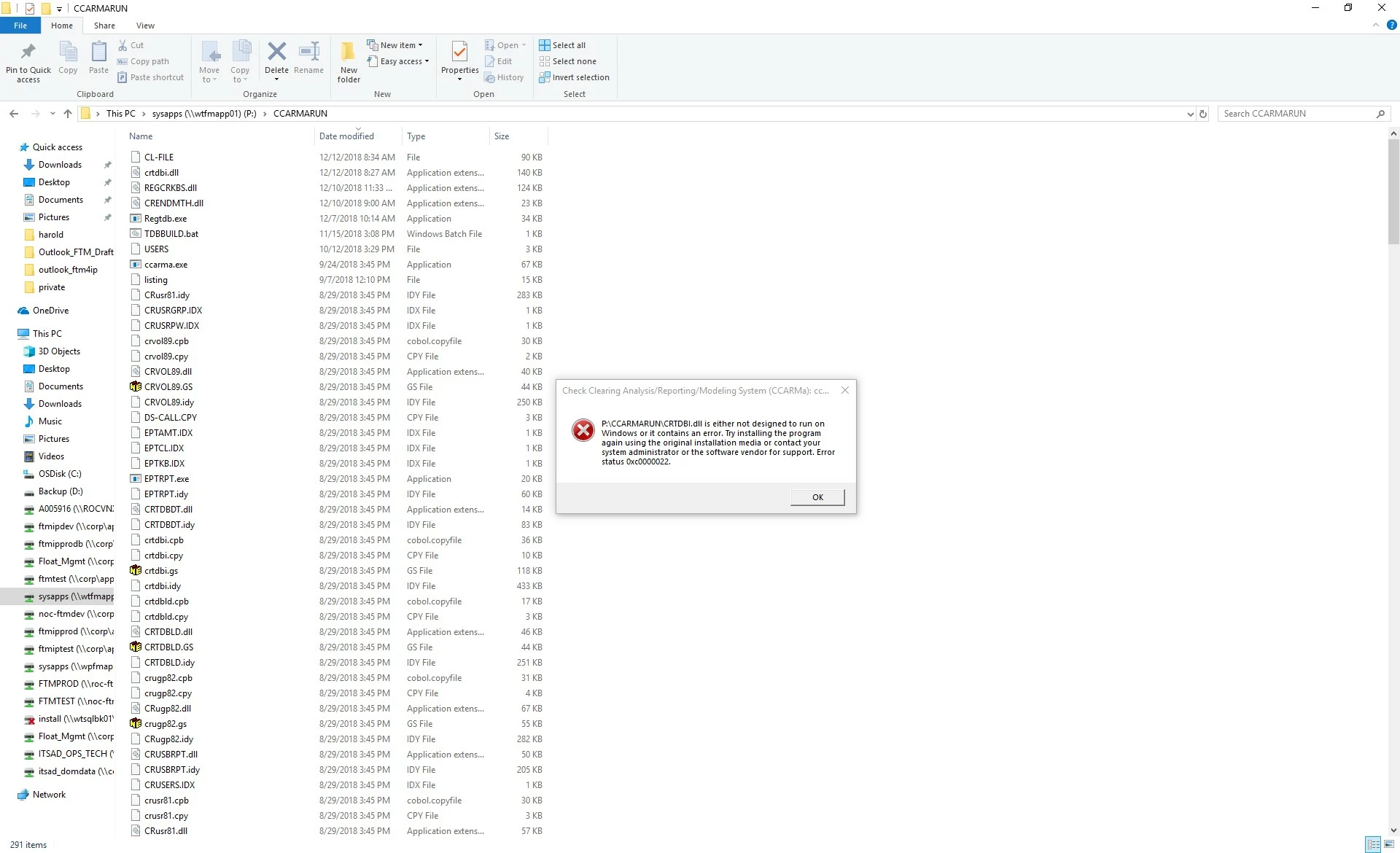 Windows error c0000022 (which is what the error dialog is displaying) is ERROR_ACCESS_DENIED. Check that the user executing the program has permission to read and execute CRTDBI.dll and all of its dependencies.