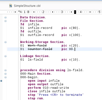 #Cross-Linefont#Windows#Strike-ThroughFont#LinuxFor anyone else viewing this thread, I highly recommend the video that Blair linked to above. He has several other videos in the same series that are invaluable in gaining a good working knowledge of Visual COBOL for Eclipse.