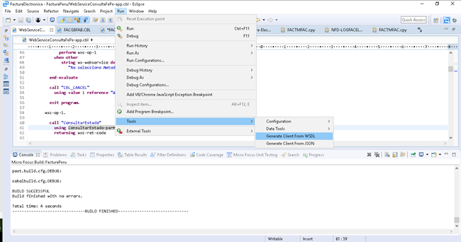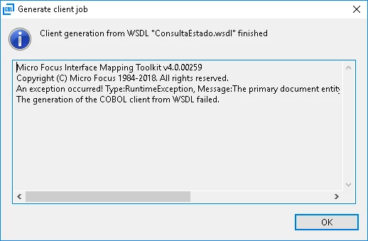 The generation of the COBOL client from WSDL failed.