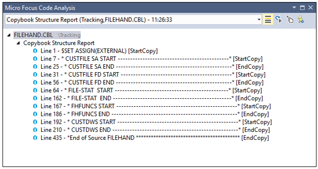 Hide copybooks from the report – exclude results for copybooks, toggle to show the details for all files listed in a report (includes copybooks).