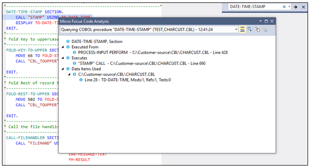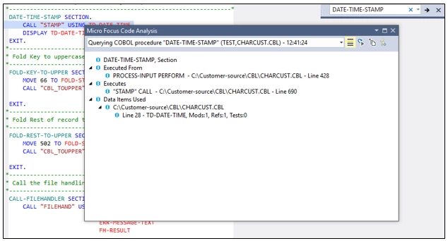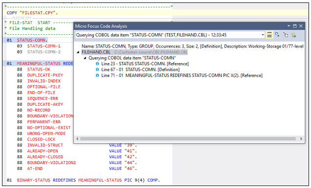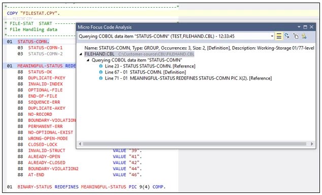 COBOL Source Information (CSI) is a well-established code analysis view of COBOL programs, and is available within Visual COBOL.