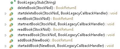 The following file has been generated: BookLegacyStub.java. This is the synchronous client which waits for a response from the server after sending a request.