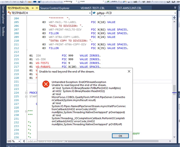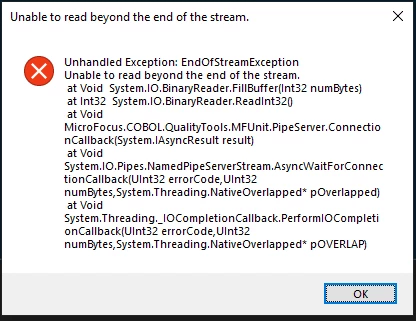 Recently, when working in a Visual COBOL 4.0 Visual Studio 2017 environment, if we leave Visual Studio 2017 up for a length of time, we get the following Visual Studio 2017 error. We then have to kill Visual Studio 2017 via Task Manager.