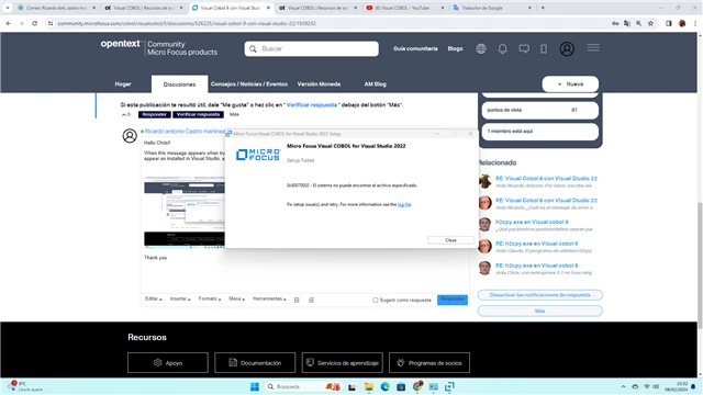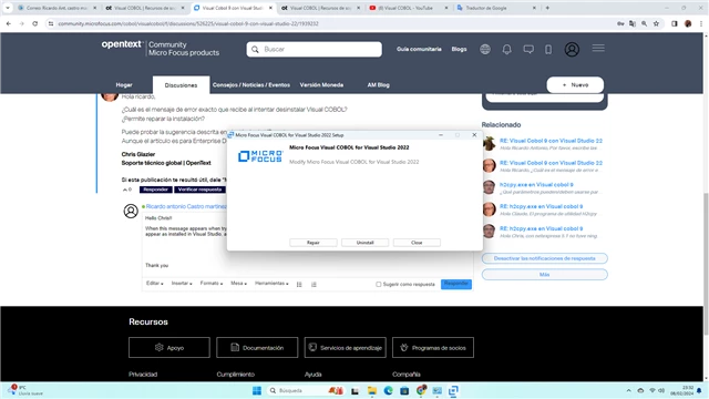 From that moment on, I started reinstalling MySql, Visual Studio, Visual Cobol, several times, the last installation of Visual Cobol was done wrong, now it won't let me uninstall it completely. I have started with a great desire to learn Cobol and I have this problem that I don't know how to solve. I would greatly appreciate any help you can give me.