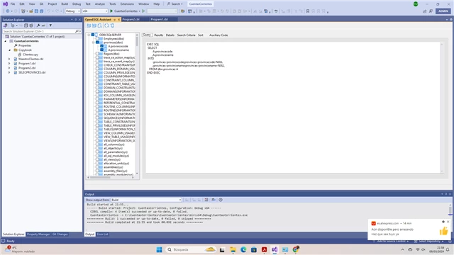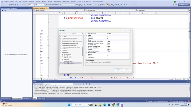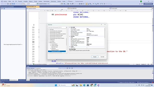 Hello Chris, you are right, in Spanish Visual Studio works differently. I have changed the language, now the OpenESQL Assistant appears, after changing the language, I did a MySql connection test, I was able to do a Select and an insert from the code and it worked very well, the next day it stopped working, it does not occur no errors, the same thing happens with the connection with SQL server, in OpenESQL the DB and the tables appear, execute query, insert, update, delete and it works very well, but in the code it does not work, it does not search for anything.