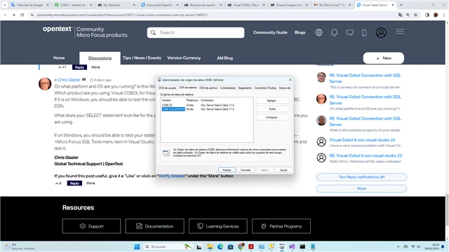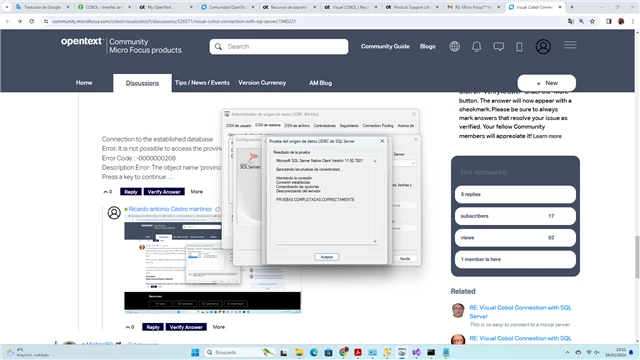 I am trying to connect COBOL Visual with SQL Server, I cannot find a possible way, I have tried several ways as you indicate, but I have not been able to.