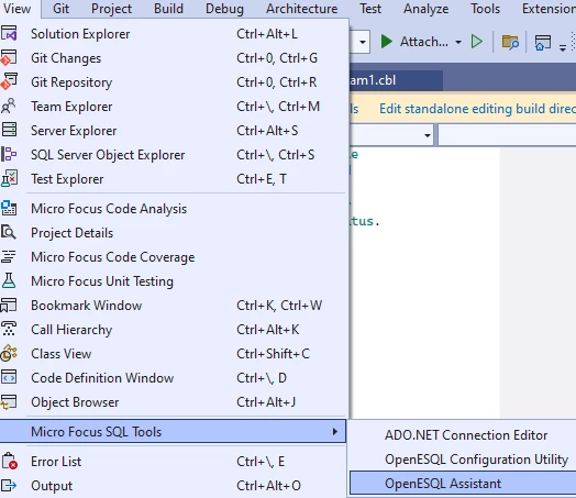 I am using Visual Studio 2022, in the View menu of Visual Studio the Micro Focus SQL Tools option does not appear, therefore it cannot do what it asks me to do, if it is not there, could it be that the installation of Visual Studio is wrong? How difficult this whole connection with SQL thing is. I greatly appreciate the effort you make as a collaborator, thank you very much, I don't know if I will ever be able to establish this connection so that I can continue learning Visual Cobol with SQL.