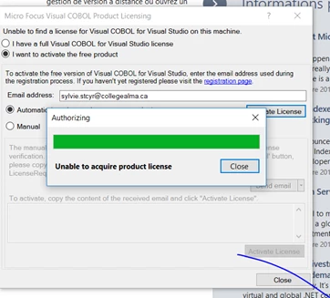 I tried to activate Visual CObol PE under Visual studio 2017 and i received this messages