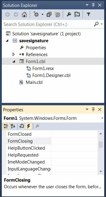 You can do this by clicking on the form itself and then in the properties window, click the lightning icon to show a list of available events and scroll down until you see FormClosing and double click to the right of this event.